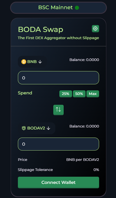 ### BodaSwap, created by Boda Token, is the first DEX Aggregator on Binance Chain to allow token swaps to occur without slippage!&#x20;